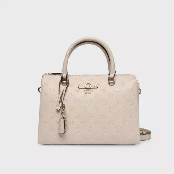 Guess Women's Peony Satchel Bag - Beige Eco Faux-Leather with Gold Accents