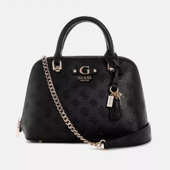 Guess Women’s Black Eco Faux-Leather Dome Satchel Bag with Peony Pattern