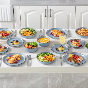24 Piece Ceramic Dinnerware Set with Reactive Glaze Stoneware Finish