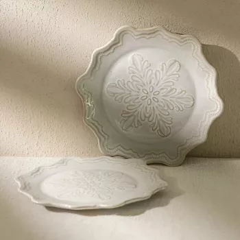 Snowflake Embossed Ceramic Dessert Plate – Elegant Winter Tableware