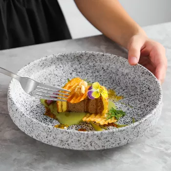 Granite Texture Ceramic Steak Plate – European Style Serving Dish