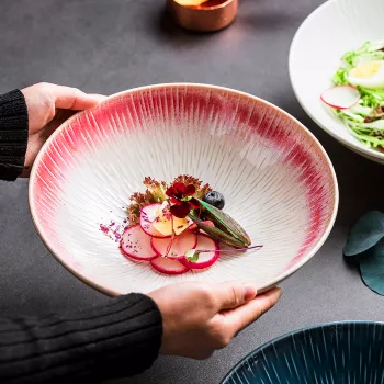 Creative Japanese Kiln-Transformed Ceramic Steak & Salad Plate