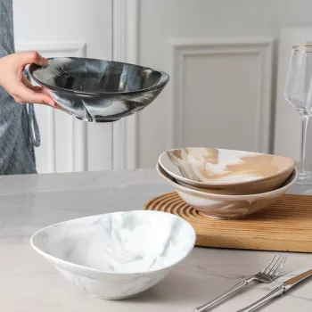 European Marble Style Irregular Ceramic Fruit & Salad Bowl