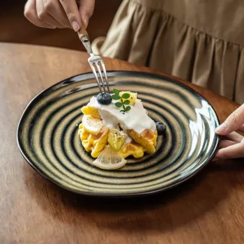 Kiln Stripe Ceramic Dinner Plate – Vintage Round Pasta & Steak Serving Dish
