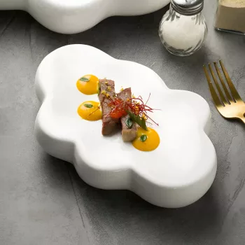 Pure White Irregular Porcelain Cloud Plate – Modern Deep Dinner Plate