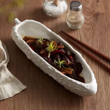 White Ceramic Balsam Pear Shaped Deep Serving Plate