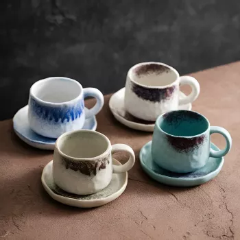 Hand-Pinched Antique Ceramic Coffee Cup & Saucer Set (250 ml)