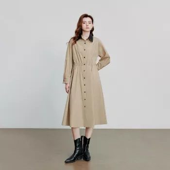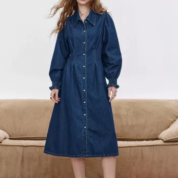 Women's Ankle-Length Turn-Down Collar Slim Fit Shirt Dress