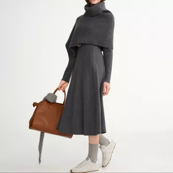Plus Size Winter Knitted Cape Dress Set Elegant Two-Piece Mid-Calf Outfit