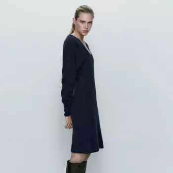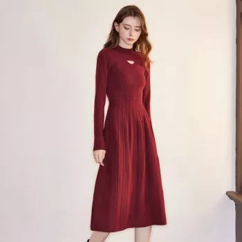 Women's Slim-Fitting A-Line Knitted Winter Office Dress