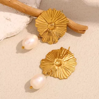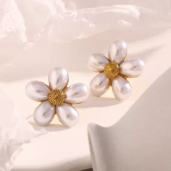 Imitation Pearl Flower Stud Earrings in 18K Gold Plated Stainless Steel