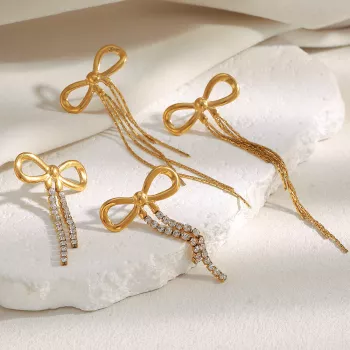 Butterfly Knot Zircon Stud Earrings – Gold Plated Waterproof Jewelry