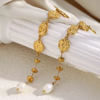 Freshwater Pearl Disc Tassel Earrings in 18K Gold Plated Stainless Steel