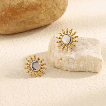 Mixed Color Sun Stud Earrings in Gold-Plated Stainless Steel