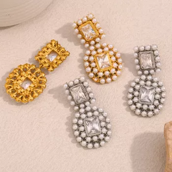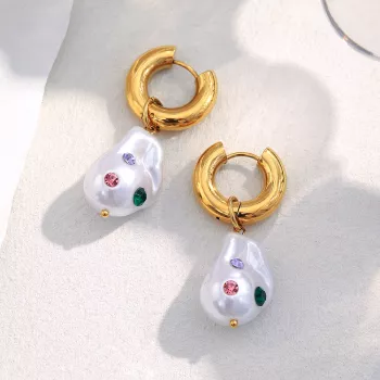 Gold Tone Zircon & Baroque Pearl Drop Stud Earrings for Women