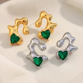 Irregular Heart Cubic Zirconia Stud Earrings in Gold-Plated Stainless Steel