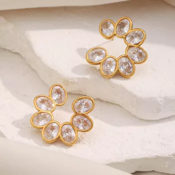 Gold Zircon Flower Stud Earrings in Waterproof Stainless Steel