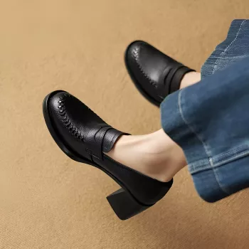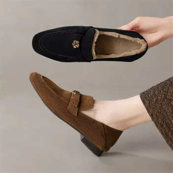 Suede Round Toe Low-Heel Women’s Retro Loafers