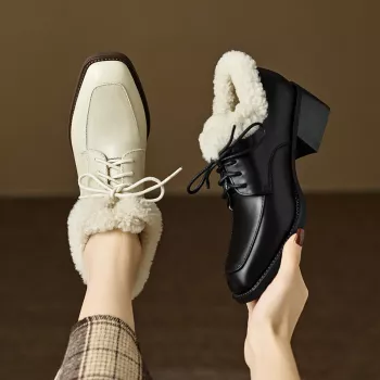 Women’s Winter Leather Loafers with Cozy Wool Lining