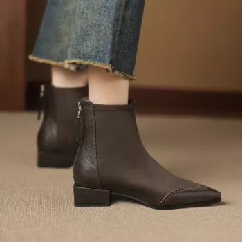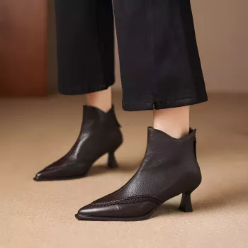 Genuine Leather Pointed-Toe High Heel Women’s Ankle Boots