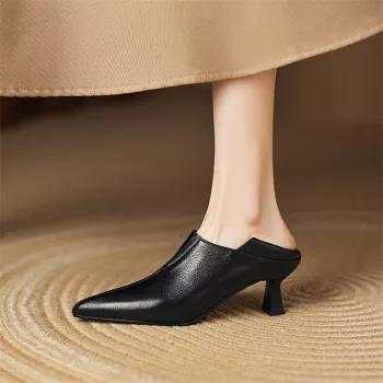 Retro Genuine Leather Pointed-Toe High Heel Loafers for Women
