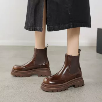 Women’s Winter Leather Chunky Chelsea Boots with Zip Closure