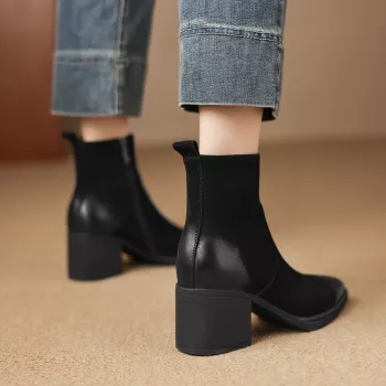 Winter Suede Square-Toe Low-Heel Women’s Ankle Boots