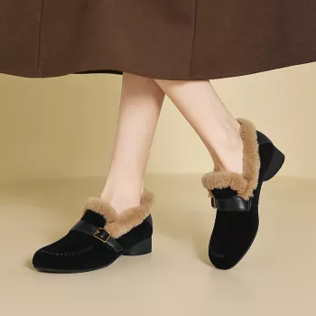 Winter Suede Round-Toe High Heel Women’s Loafers
