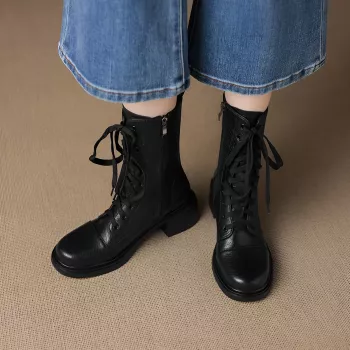 Women’s Genuine Leather Ankle Boots with Warm Plush Lining and Square Heel