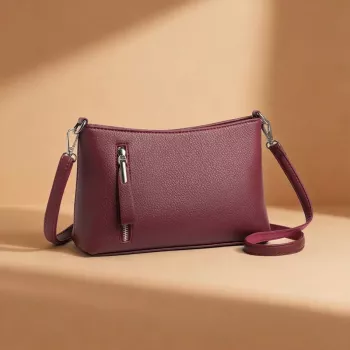 Soft Leather Crossbody Shoulder Bag for Women – Simple Solid-Color Purse
