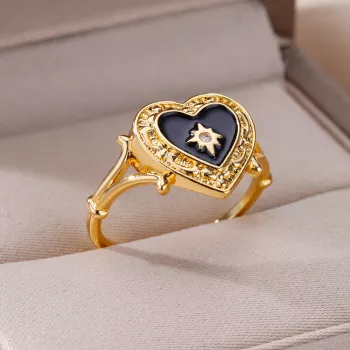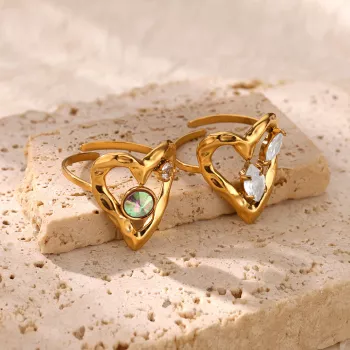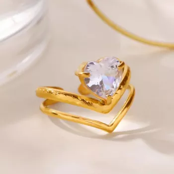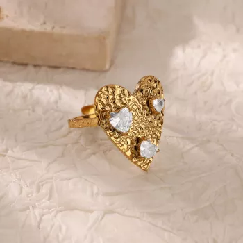 Gold Heart-Shaped Zircon Adjustable Stainless Steel Ring for Women