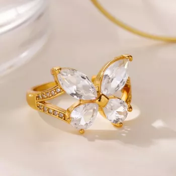 Gold Butterfly Zircon Ring for Women – Stainless Steel Hypoallergenic Jewelry