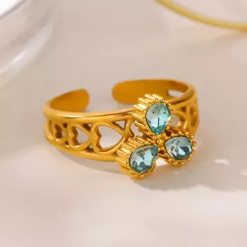 Luxury Blue Zircon Teardrop Ring for Women – Gold-Plated Stainless Steel