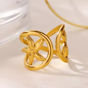 Gold Geometric Star & Starfish Stainless Steel Ring for Women