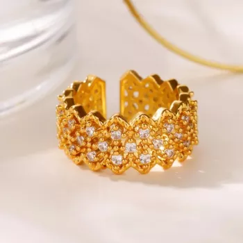 Gold Plated Geometric Zircon Ring for Women