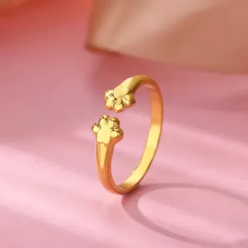 Cute Gold Bear Pawprint Stainless Steel Ring for Women