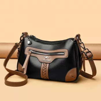 Soft Leather Women’s Shoulder & Crossbody Bag – Two-Layer Everyday Handbag