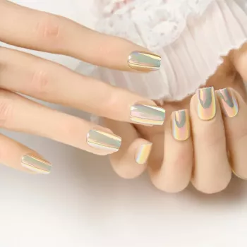 10-Piece Metallic Mirror Press-On Nails - Short Square UV Acrylic Fake Nails