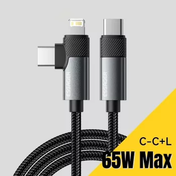 2-in-1 65W USB-C Fast Charging Cable with Right-Angle Design