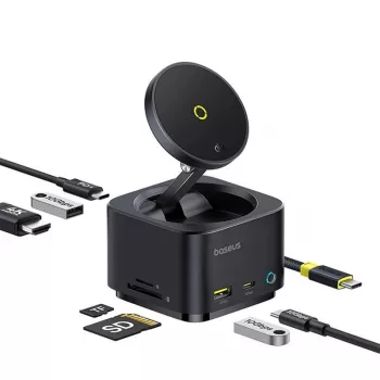 Magnetic Wireless Charger Qi2 15W with 7-in-1 USB-C Hub 4K 60Hz PD 100W