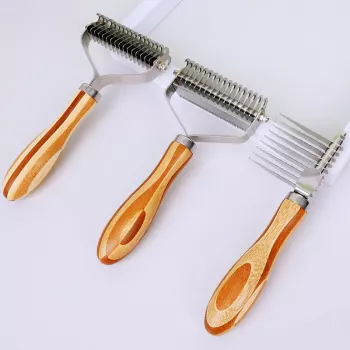 Double-Sided Bamboo Dog & Cat Comb - Stainless Steel Pet Hair Remover & Brush
