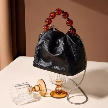 Handwoven Rattan Beach Handbag with Acrylic Chain
