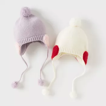 Baby Knit Hat with Pompom and Ear Protection
