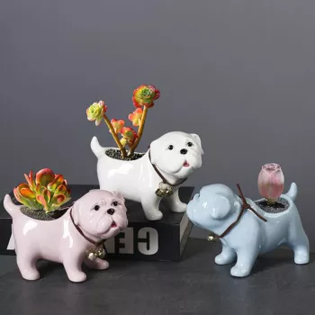 Adorable Ceramic SharPei Dog Succulent Planter Pot – Cute Home & Office Decor