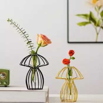Elegant Metal Flower Vase with Silk Bouquet for Home & Wedding Decor