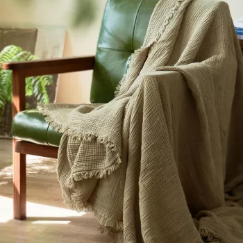 Solid Color Cotton Tassel Muslin Throw Blanket for Sofa, Bed & All-Season Use