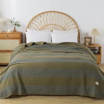 Breathable Cotton Muslin Striped Lightweight Bedspread