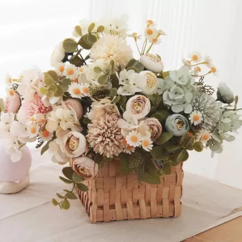 Rose Artificial Silk Flowers Bouquet for Home and Wedding Decoration