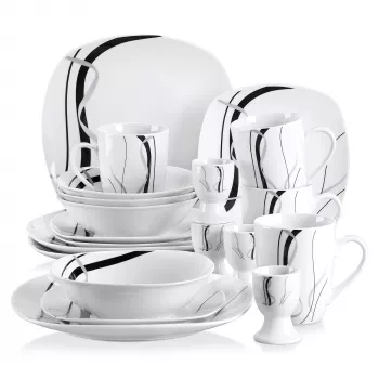 20-Piece Black Stripe Porcelain Dinnerware Set with Plates, Bowls & Mugs