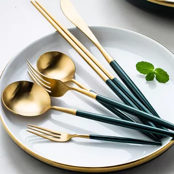 Elegant Green Golden Stainless Steel Cutlery Set – Modern European Tableware
